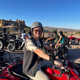 Mas não senti falta. Fiz algo ainda melhor: um tour de quadriciclo (ATV) ao entardecer, passando pelos vales rosas e vermelhos, colinas lunares e trilhas de tirar o fôlego. E sinceramente? Foi o melhor passeio da minha vida. Engraçado, radical e absolutamente cinematográfico.